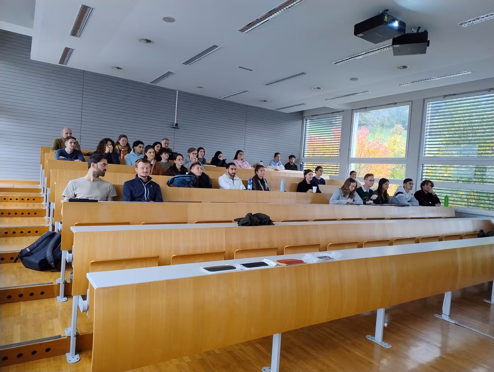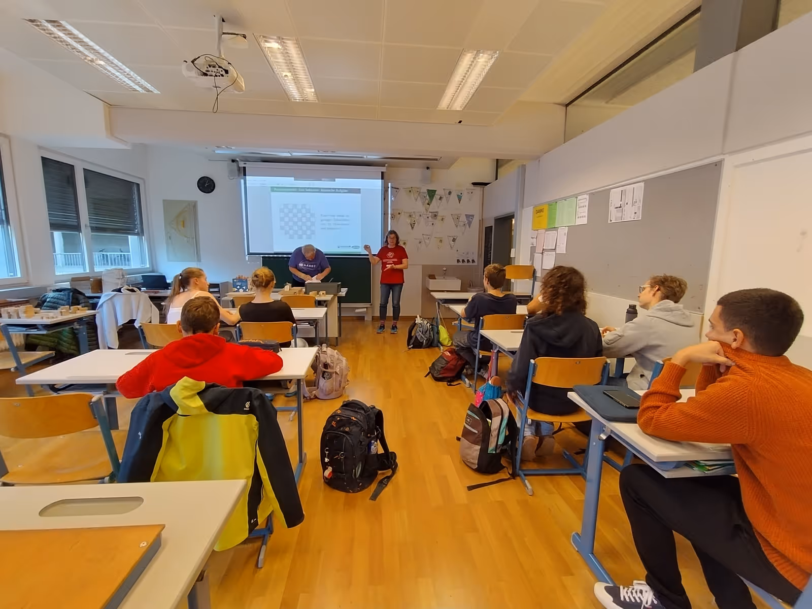 Zwei Professor:innen, Dr. Erich Fuchs und Bettina Kreuzer von der Universität Passau, hielten am Donnerstag, den 16. Oktober, einen Vortrag über verschiedene mathematische Anwendungen. Einige unserer Schüler:innen und angehende Lehrpersonen der PH Vorarlberg erhielten Einblicke in autonom fahrende Fahrzeuge, wie Roboter Fehler in der Lackierung und auf anderen reflektierenden Flächen erkennen, wie 3D-Druck in industriellen Größen funktioniert – und wie viel Mathematik dahintersteckt.