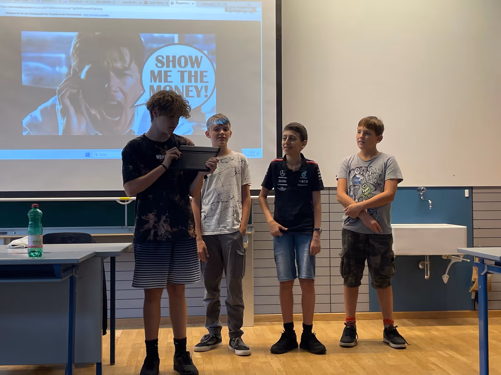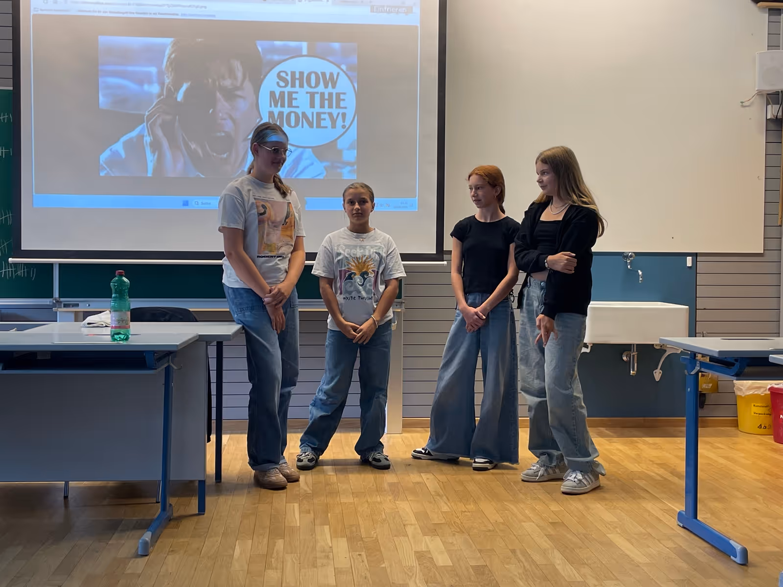 In anderen Stunden haben wir in Teamarbeit einen eigenen Fünf-Minuten-Film gedreht. Jedes Team hat einen tollen Film gedreht und jeder war anders. Am Tag der Aufführung haben wir uns die Filme angesehen und dann kam die Generalprobe. Es hat uns alles sehr viel Spaß gemacht und wir hoffen, dass es nächstes Jahr genau so spannend wird.