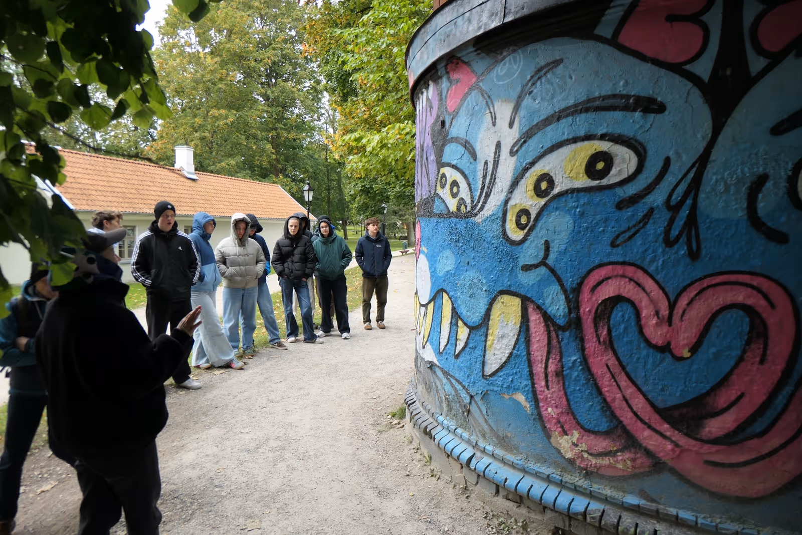 Bei einer Führung durch das historische Zentrum von Tartu bekamen wir einen guten Eindruck von der zweitgrößten Stadt Estlands. Wir sahen unter anderem den bekannten Brunnen mit den küssenden Studenten oder das schiefe Haus, das heute als Kunstmuseum dient. Da Tartu seit 2010 jährlich das „Stencibility Festival“ für Streetart hält, bei dem Künstler:innen sich kreativ in Form von kleinen Wandgemälden Stickern, etc. ausdrücken können, ist die Stadt über die letzten Jahre zu einer künstlerischen Hochburg geworden.
