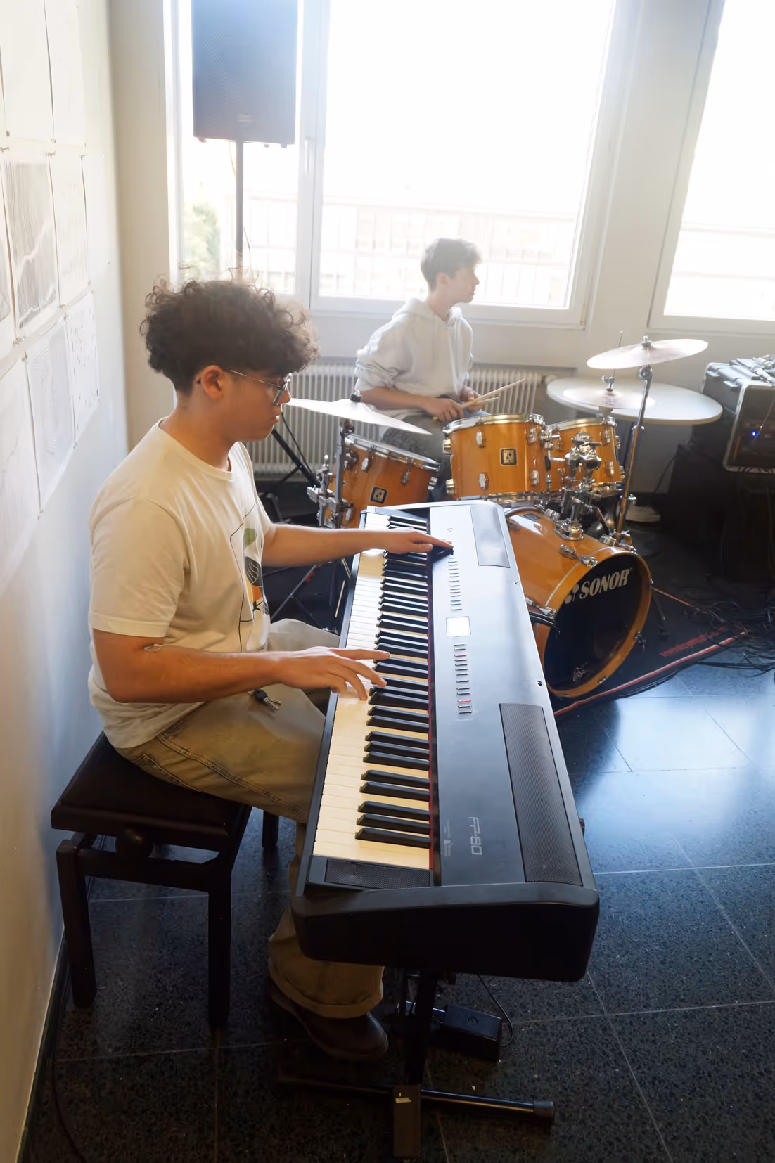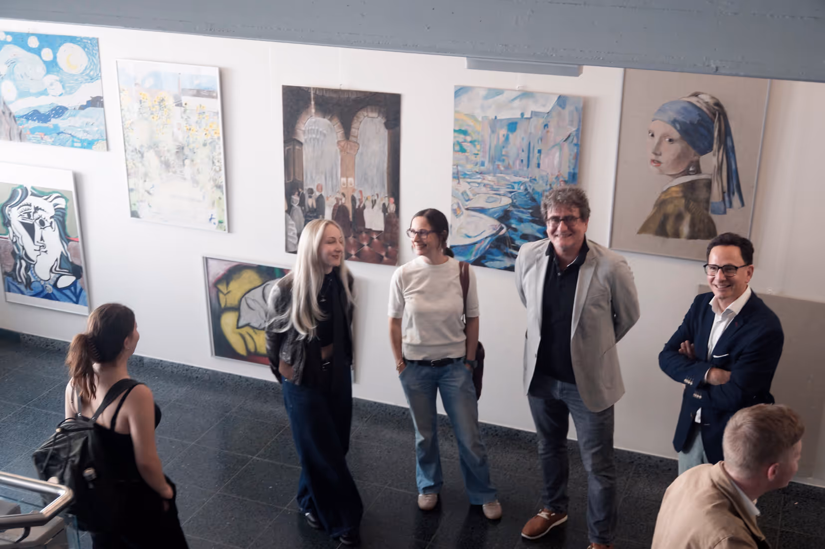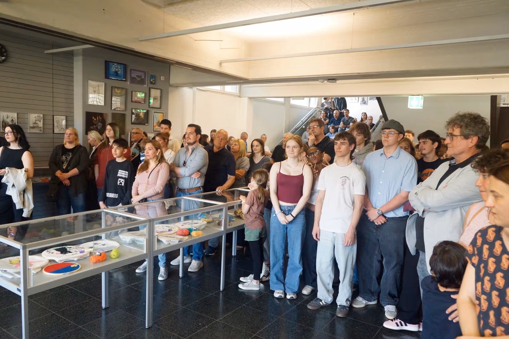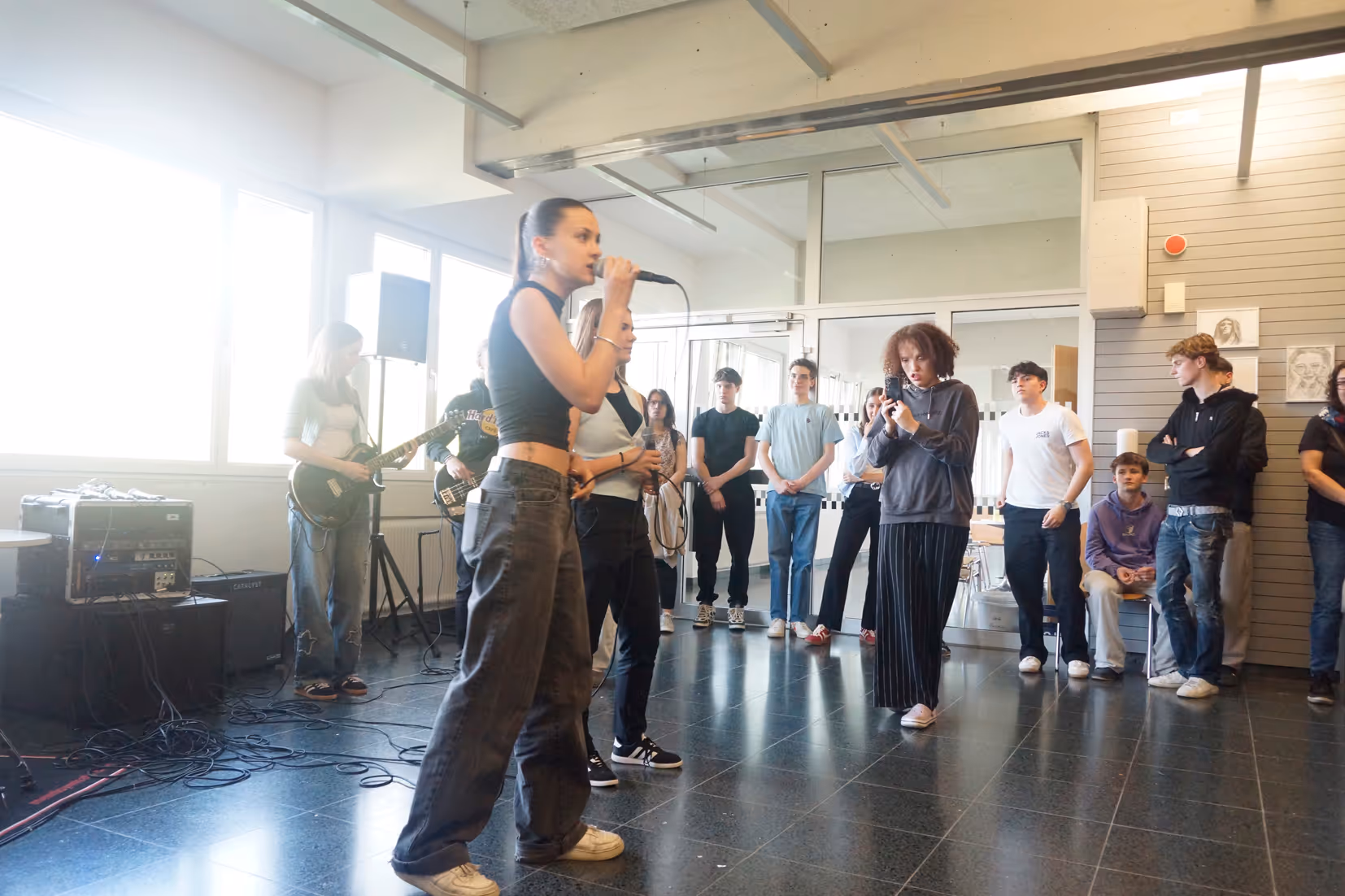 Möglichkeiten für die Schüler:innen zu bieten, sich kreativ zu entwickeln, ist ein zentrales Anliegen unserer Schule. Bei der Vernissage der Kunst-Jahresausstellung der Oberstufe am Dienstag, den 29. April 2025 konnte der ART-Zweig bildende Kunst einem zahlreich erschienenen Publikum präsentieren. Nach der Begrüßung durch Prof. Rainer Schneider und Direktor Andreas Mark bot das Rahmenprogramm der Vernissage Erläuterungen von Schüler:innen zu den ausgestellten Werken, ein Buffet sowie einen überzeugenden Auftritt der Schulband.