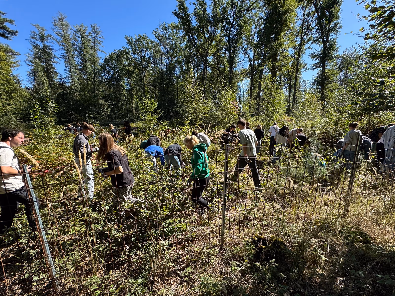 Die nächsten zwei Tage verbrachten wir im Freiland beim Ersten Hessischen Waldjugendheim, zählten und bestimmten Flora und Fauna und erarbeiteten verschiedene Aufgaben zum Ökosystem Wald. Nach einer Stärkung in der Schulmensa gab es noch ein lustiges Back-Event in der Schulküche. Zum Abschluss am Donnerstag im Wald stand eine Rettungsaktion des Ökosystems an: Dabei durften wir in einem großen Waldstück verwucherte Brombeeren über kleinen Eichen entfernen, damit die Eichen wieder mehr Licht zum Wachsen bekommen.