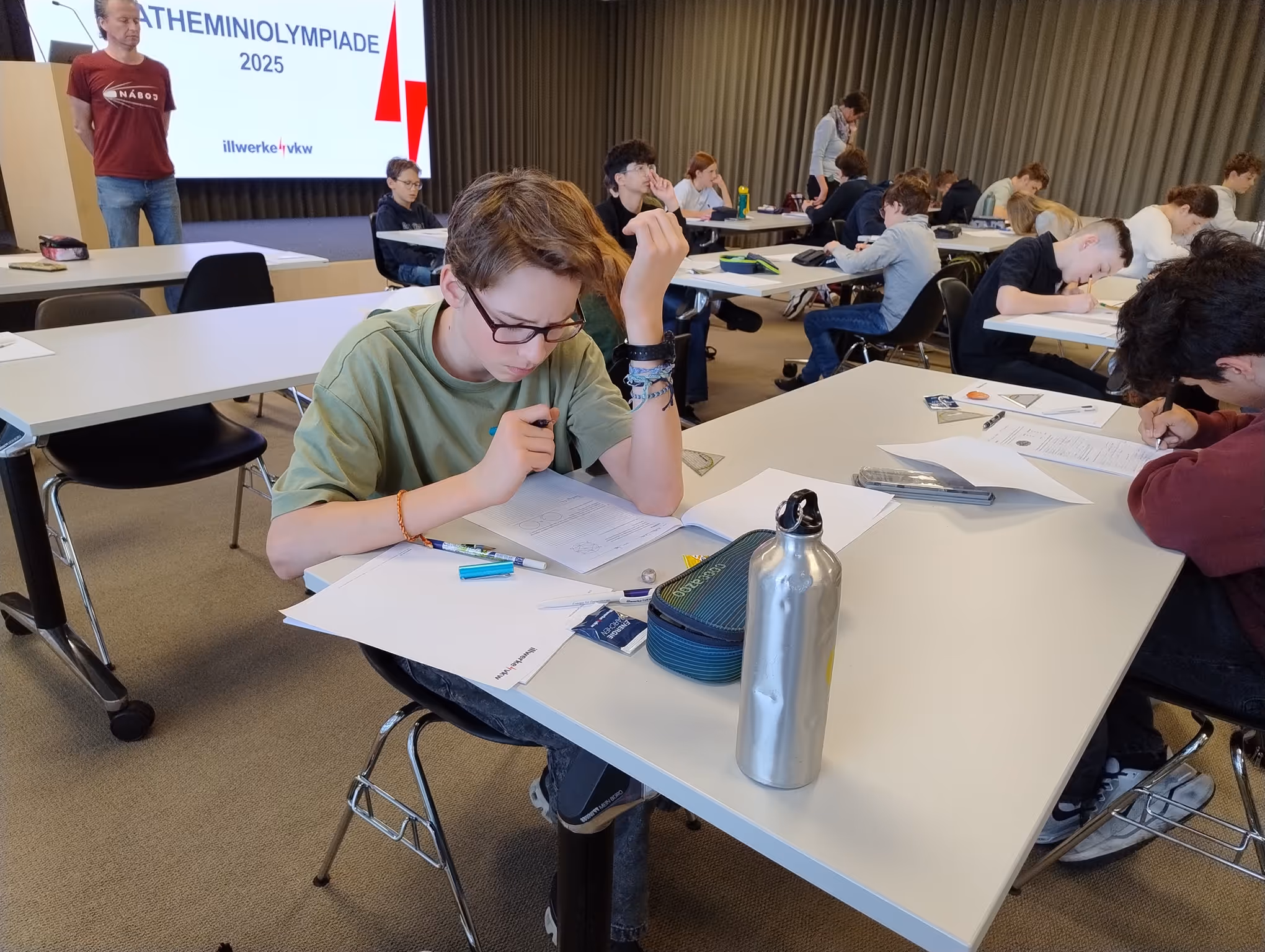 Am Mittwoch, den 21. Mai, fand in Bregenz die diesjährige Vorarlberger Mathematik-Olympiade statt. An dem von Illwerke VKW gesponserten Wettbewerb nahmen 53 Schüler:innen aus den Unterstufen aller zehn Vorarlberger Gymnasien teil.