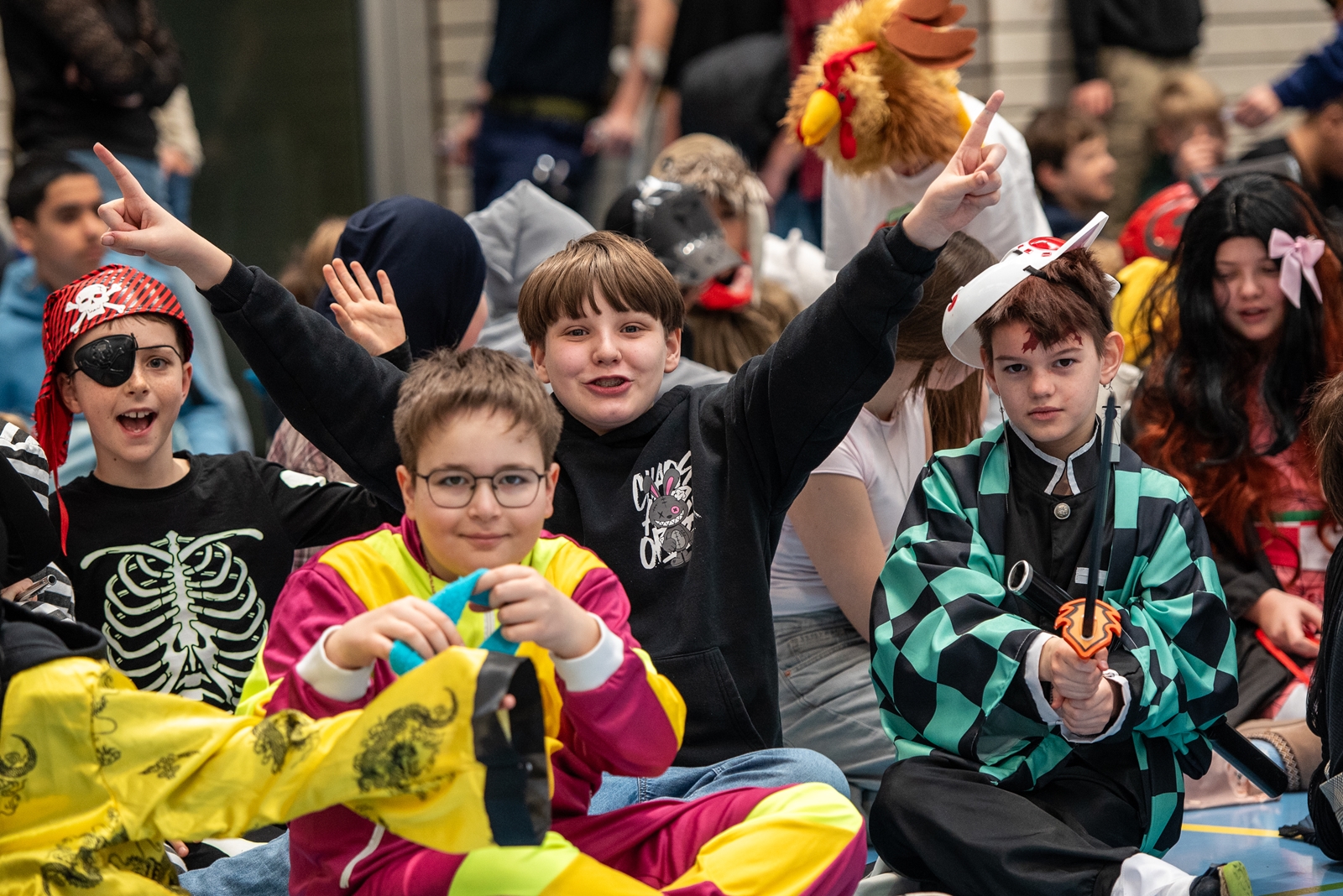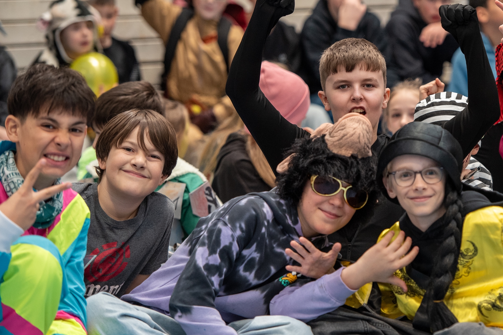 Die von unserer Schüler:innenvertretung organisierte und moderierte Faschingsfeier für alle Klassen begann mit einem Kostümwettbewerb, bei dem unsere Schüler:innen ihre Originalität und Kreativität unter Beweis stellten. Besonders schön war, dass Vincent Nemes aus der 8m-Klasse mit einer selbstgebastelten SpongeBob-Schwammkopf-Verkleidung die fachkundige Jury am meisten überzeugen und den ersten Preis gewinnen konnte.