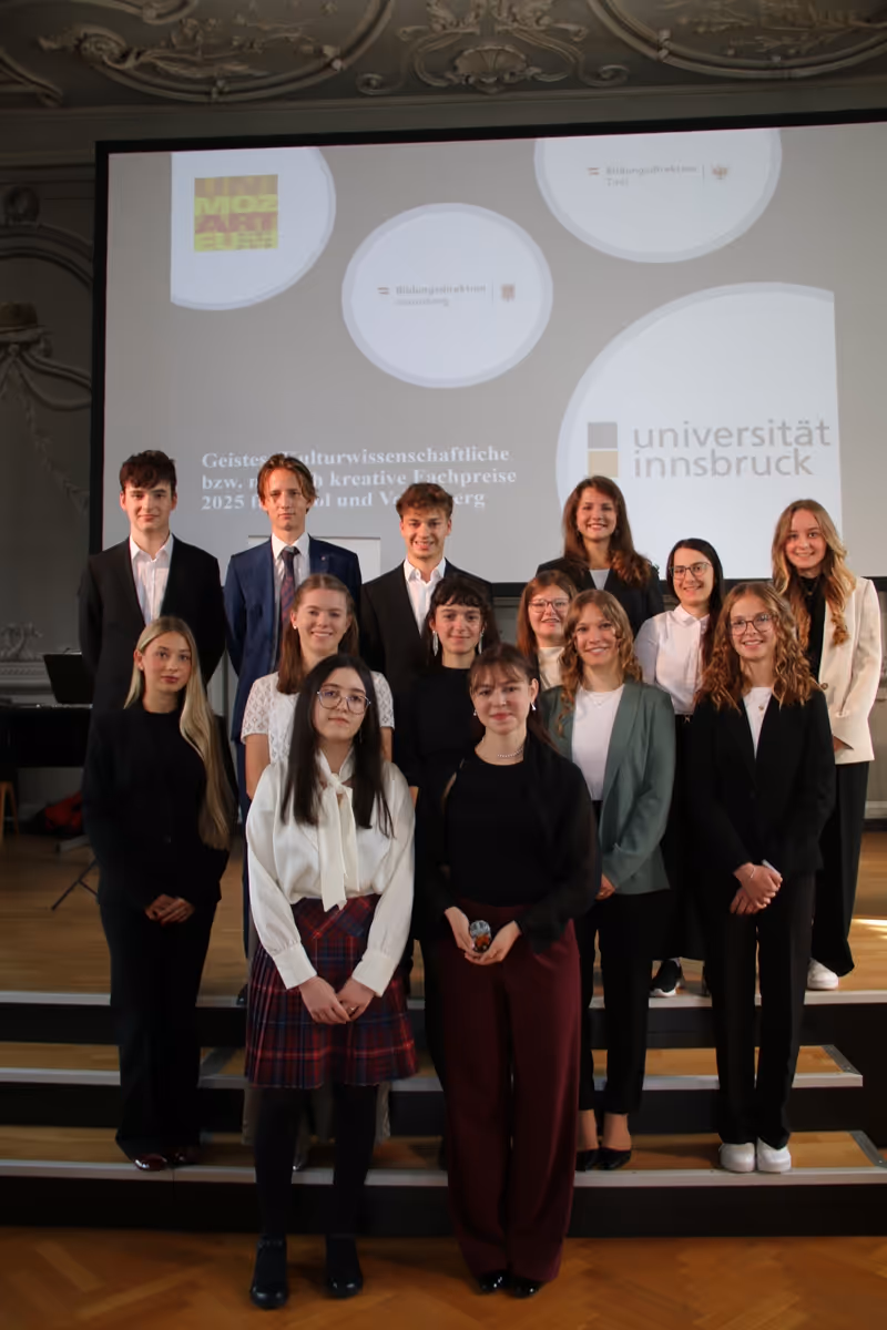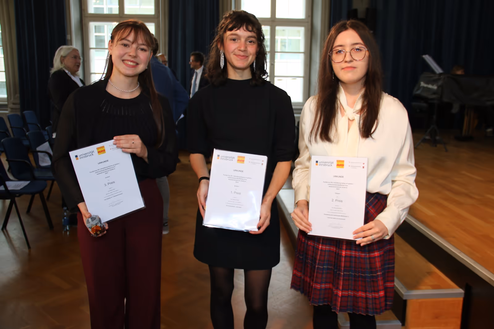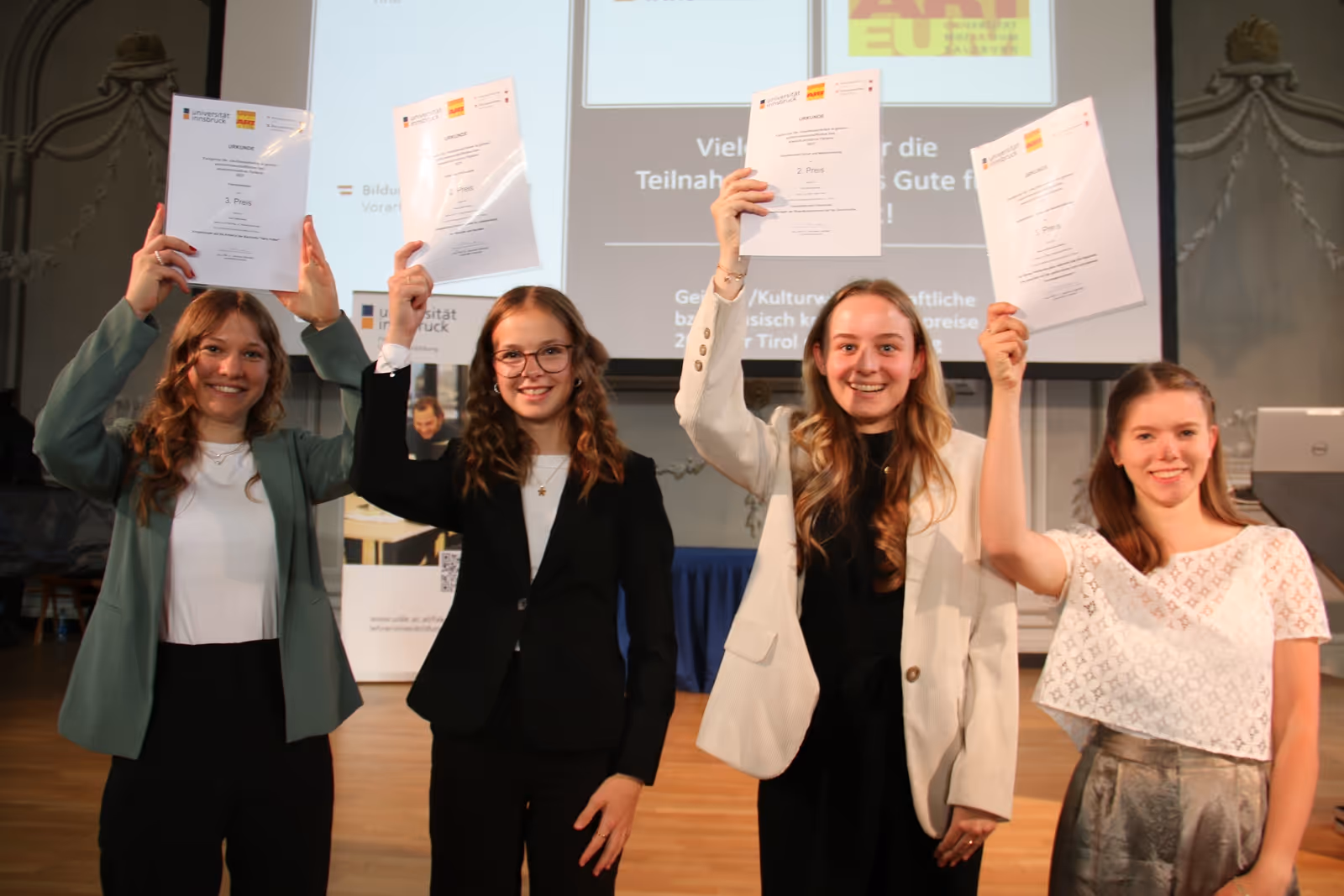 Am 26. September durften in Innsbruck zwei ehemalige Schülerinnen des Gymnasiums Schillerstraße eine besondere Auszeichnung für ihre ABA (vormals VWA) entgegennehmen. In Kooperation mit dem Mozarteum Salzburg sowie den Bildungsdirektionen Vorarlberg und Tirol überreichte Prof. Johannes Odendahl, Leiter des Instituts für Fachdidaktik, stellvertretend für die Universität Innsbruck Felicitas Berger und Viktoria Ganahl einen Preis für ihre hervorragenden ABAs.