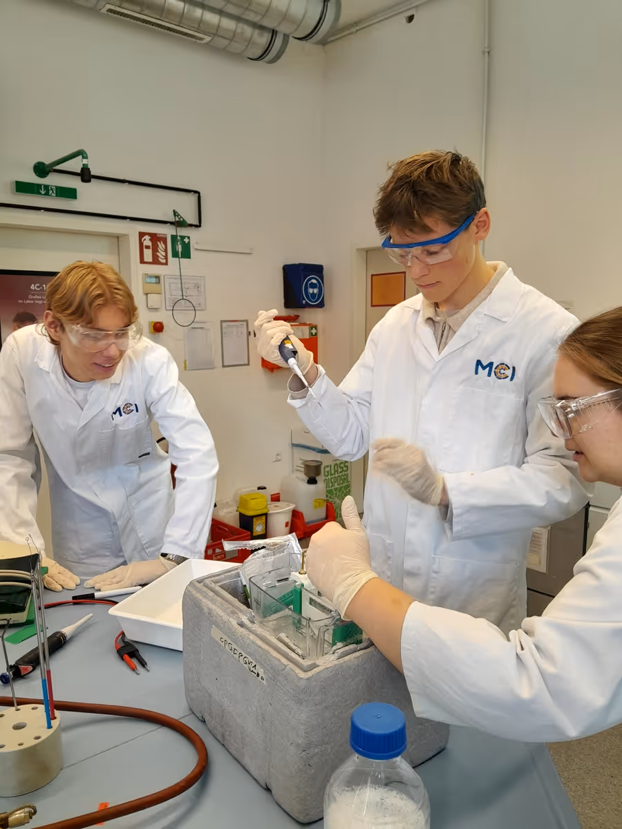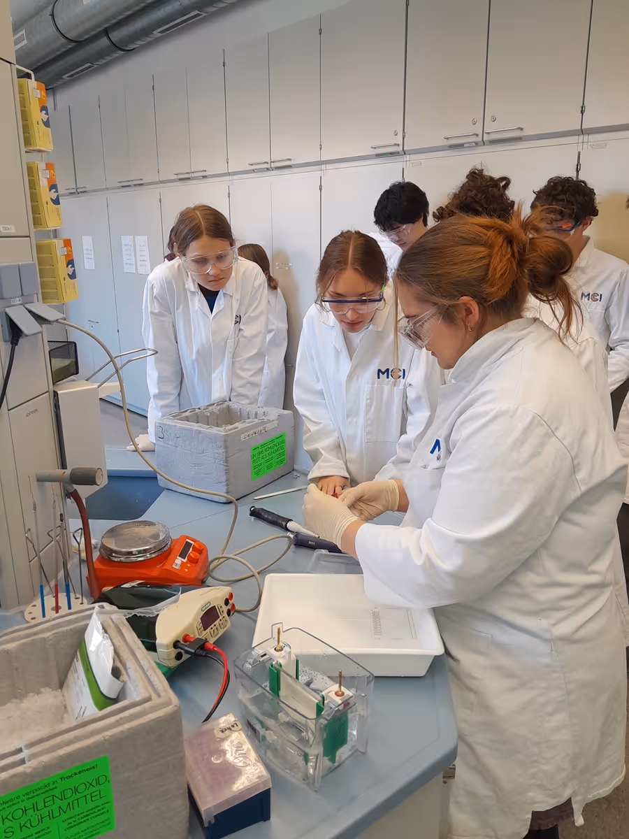 Am Dienstag fuhren die 6c und die 7c mit Herrn Prof. Gröbner und Frau Prof. Brugger nach Innsbruck. Die 6c setzte sich dort in verschiedenen Workshops mit Themen wie Geosphere, der Funktionsweise einer Wetterzentrale und anschließend Lebensmitteltechnologie auseinander. Die 7c nahm an einem Workshop teil, in dem wir uns anhand verschiedener Fische mit Proteinen beschäftigten. Dabei lernten wir, wie man in einem richtigen Labor arbeitet.