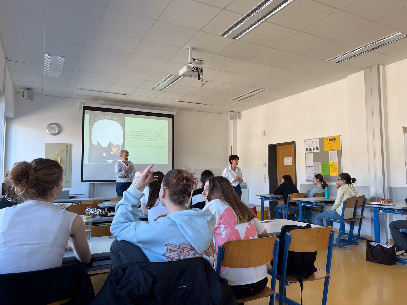 Die Schüler:innen konnten Fragen stellen und sich im Workshop eigenständig einbringen. Besonders interessiert waren sie an den Krankheitsbildern, dem Aufenthalt in der Palliativstation und den Arbeitsabläufen dort. Im Verlauf des Workshops wurden auch schwierige Schicksale sowie Themen wie Trauer, Verlust und Tod angesprochen. Die Schüler:innen waren aber auch hier offen und stellten viele Fragen. Zum Abschluss wurden zusammen Strategien erarbeitet, wie man mit Trauer, Sterben und Tod im Alltag umgehen kann.