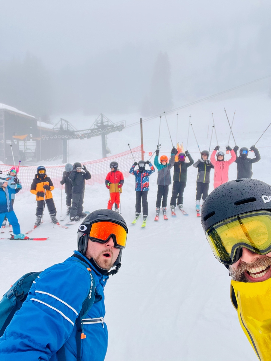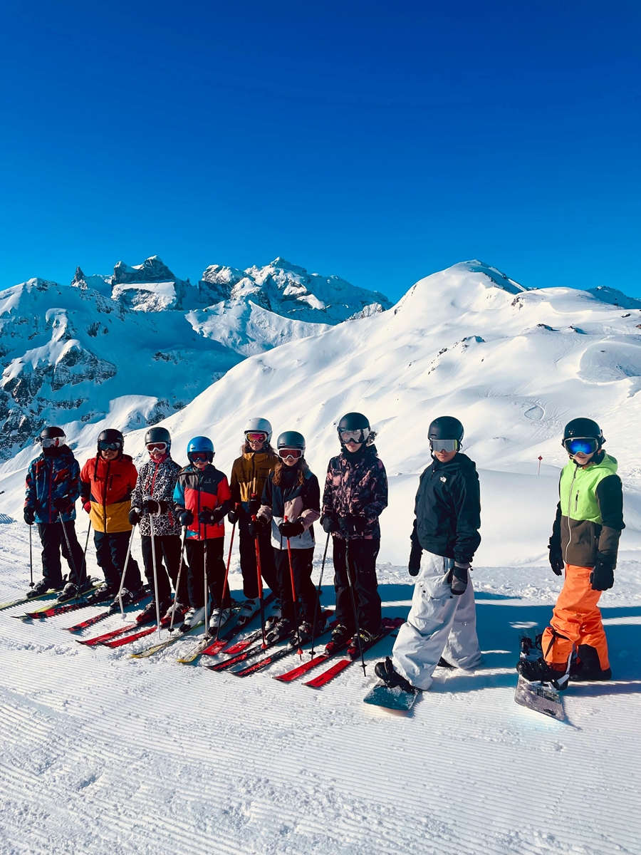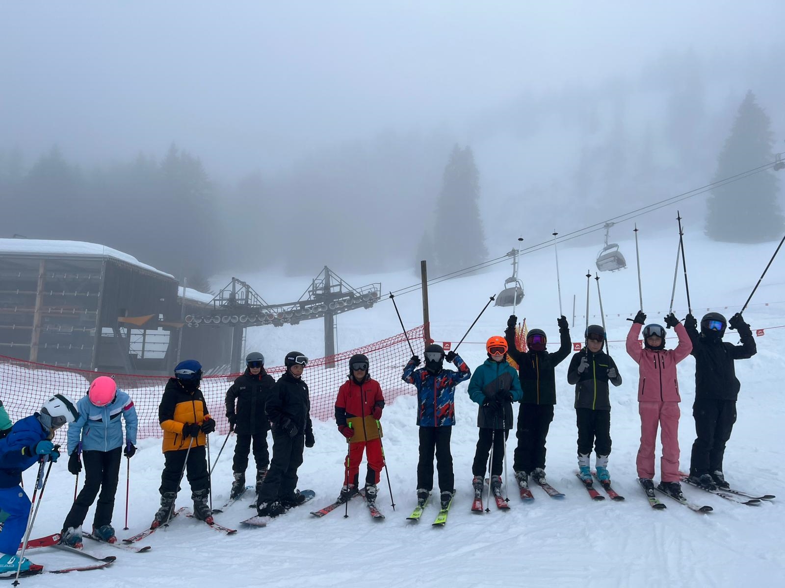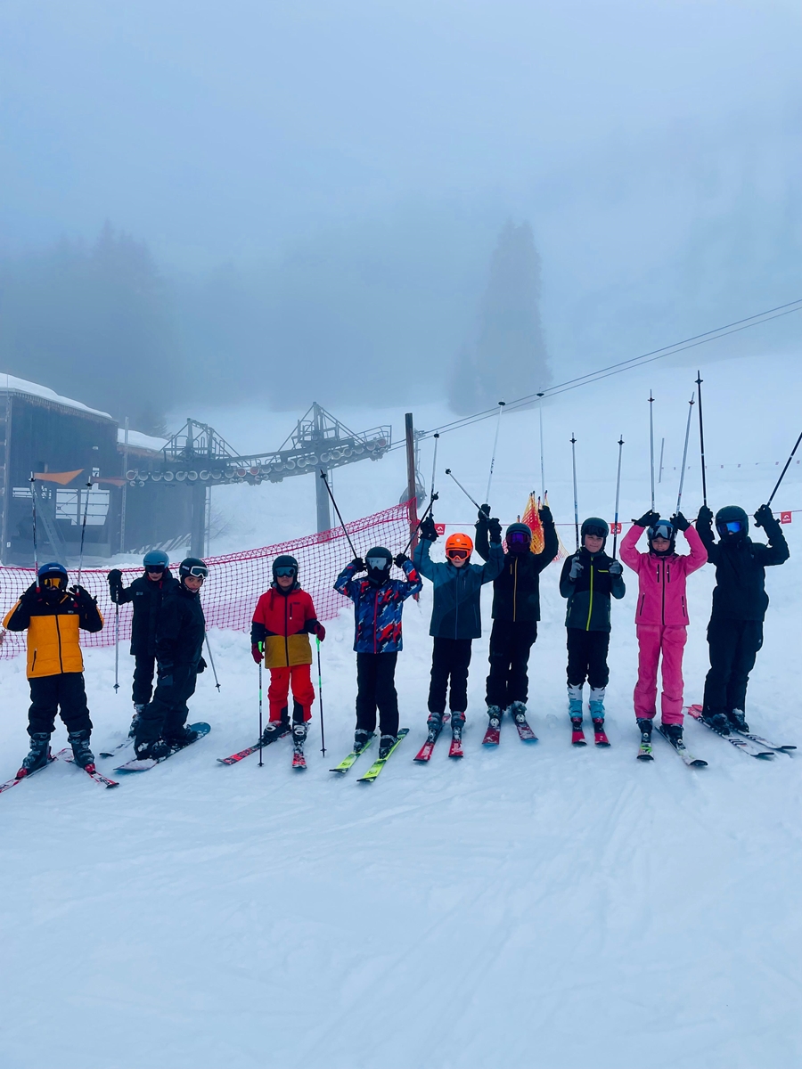Unser Treffpunkt war am Montag, dem 23.02.2026, bei der Eishalle Feldkirch. Nachdem wir unser Gepäck sowie unsere Schiausrüstung eingeladen und uns von unseren Eltern verabschiedet hatten, fuhren wir los. Mit einem Bus von „Happy Holidays“ kamen wir bis zur „Golmer-Gondel“ in Tschagguns.